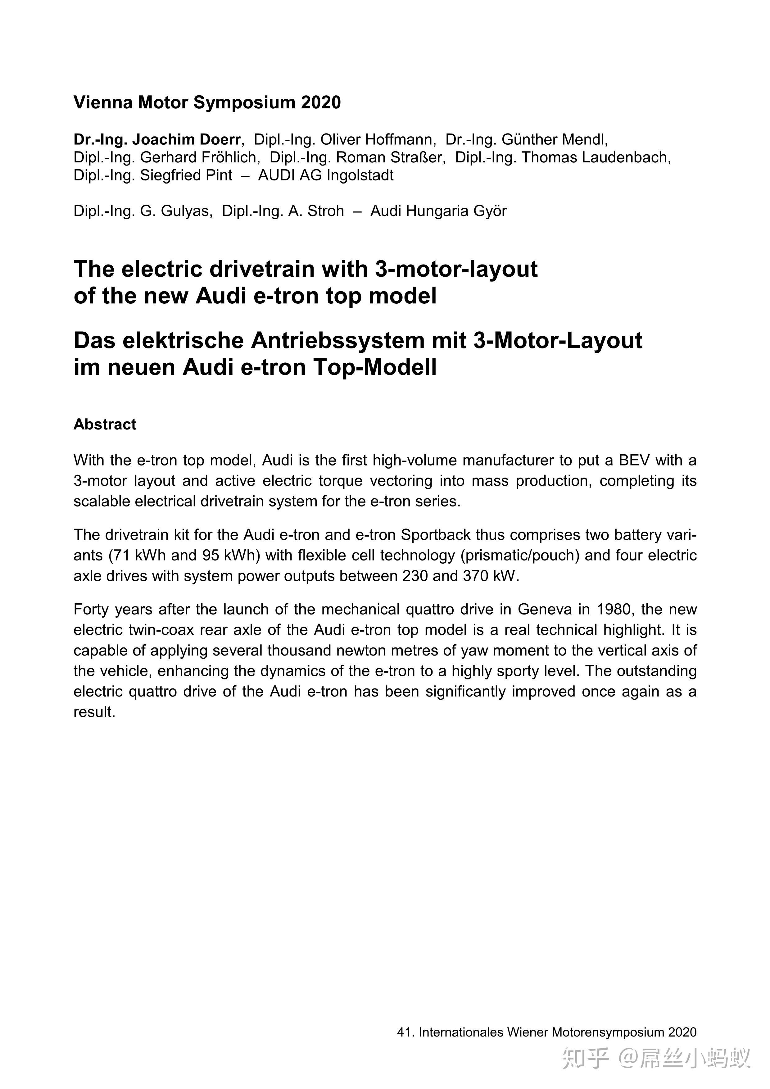 前方高能! 2020 奥迪E-tron 三电机动力架构!