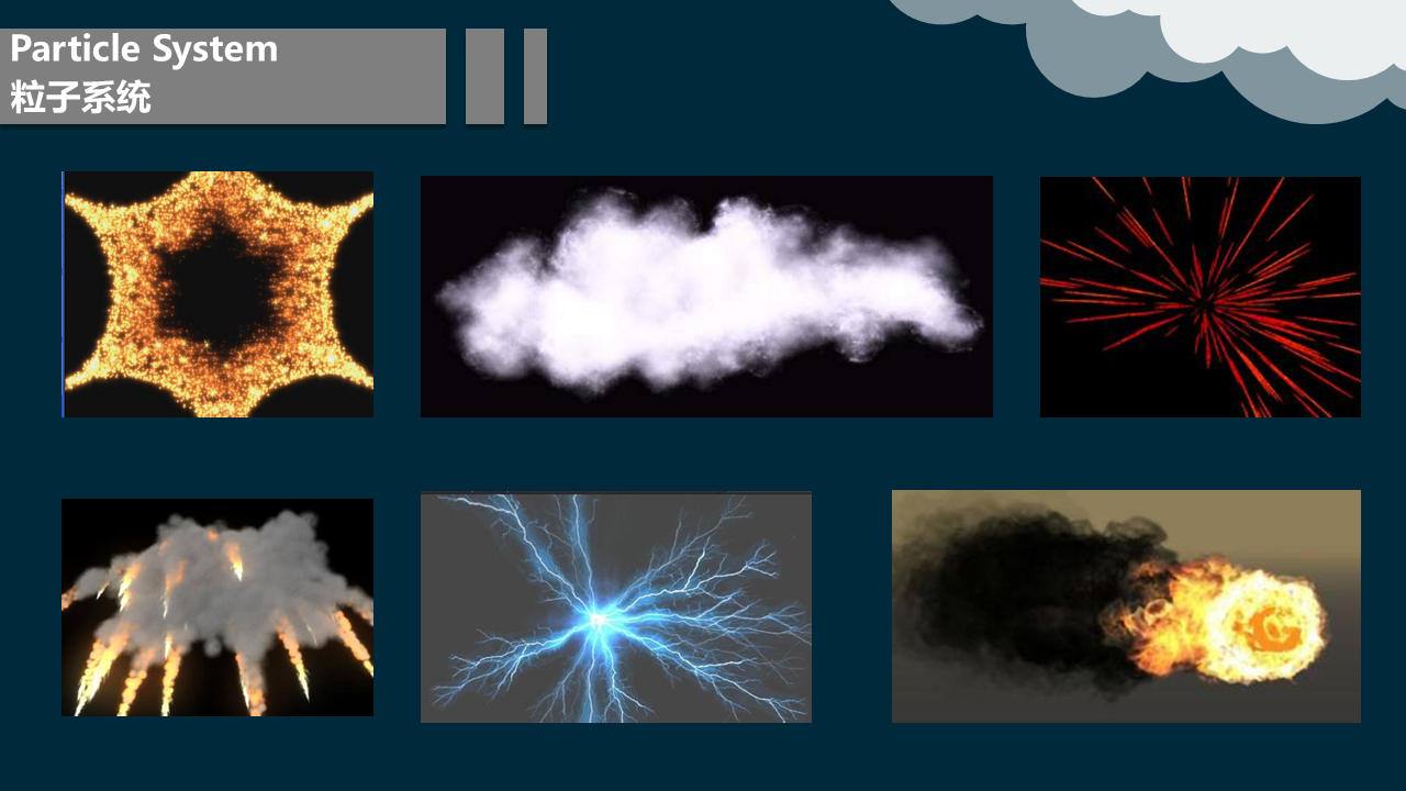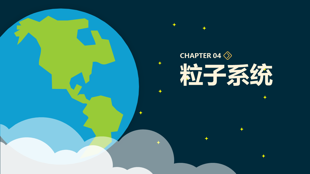 粒子系统表示三维计算机图形学中模拟一些特定的模糊现象的技术,而这些现象用其它传统的渲染技术难以实现的真实感的效果。经常使用粒子系统模拟的现象有火、爆炸、烟、水流、火花、落叶、云、雾、雪、尘、流星尾迹或者象发光轨迹这样的抽象视觉效果等等。