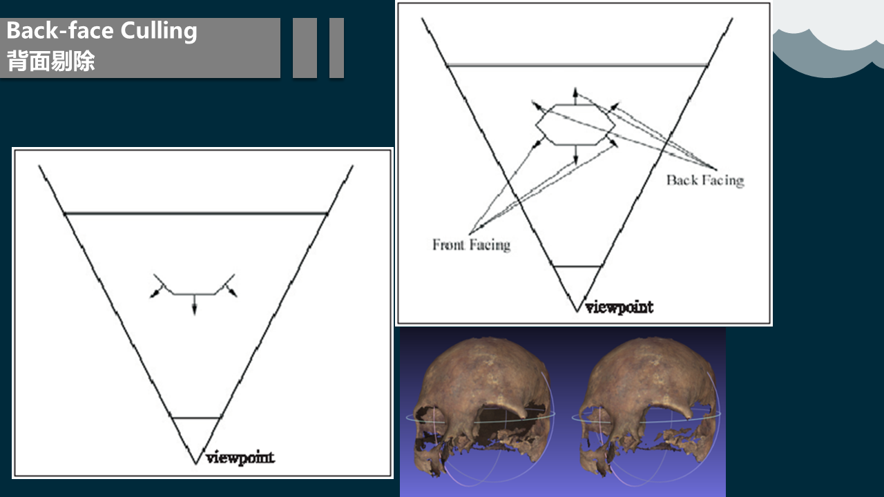 我们知道,渲染的基本单位是一个个的三角形面片。无论多么复杂的3D 模型都是由一个个基本的三角型的面片组成的。既然是一个面片,那必然就有两个面,如果其中有一个面被称为正面,那相应的另一面就被称为背面。