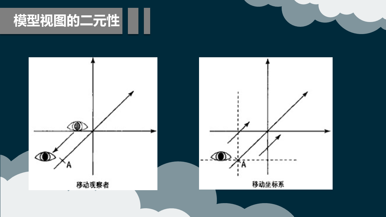 视图和模型变换对场景外部的最终效果来看是一样的,将两者区分开纯粹是为了程序员方便。将对象向后移动和将参考坐标系向前移动在视觉上没有区别。