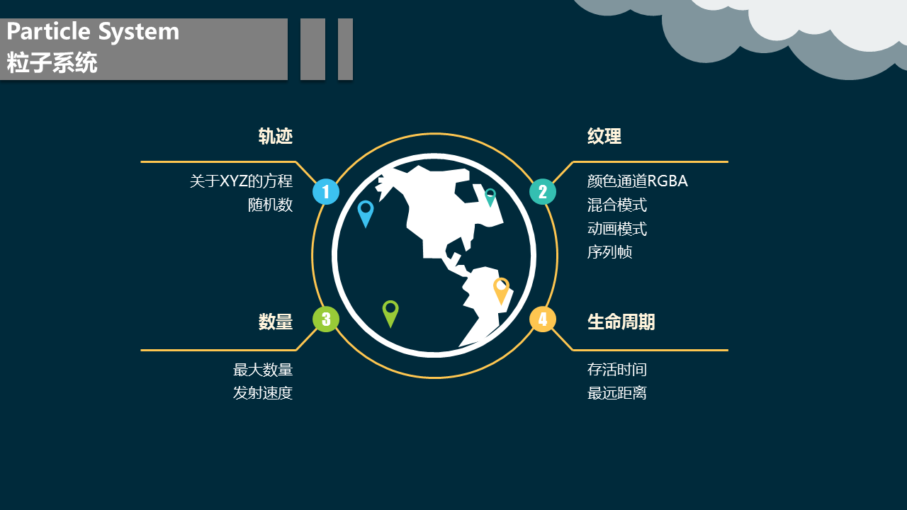 什么是粒子系统?粒子系统是由总体具有相同的表现规律,个体却随机表现出不同的特征的大量显示元素构成的集合。