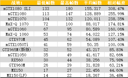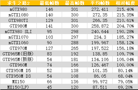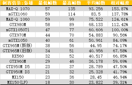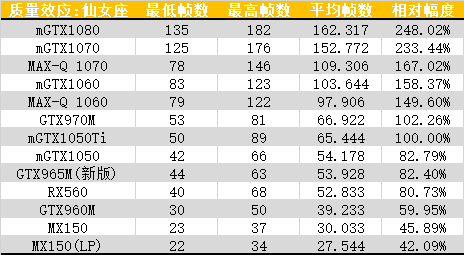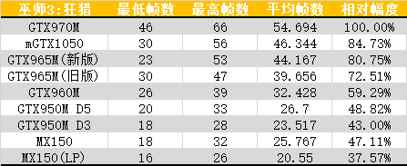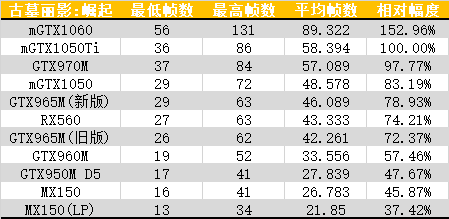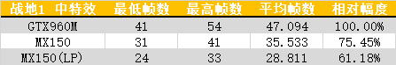 这个表现还是不错的,标准版的MX150达到了上一代游戏本的入门级水准,而低功耗版的MX150可以直接取代现有940MX笔记本的位置,性能提升是标准的一档。