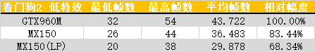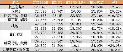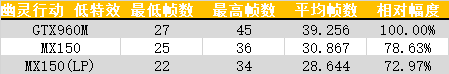 可以看到,大部分游戏,MX150只能开低特效,中特效下都无法保证平均30帧的基本流畅需求。