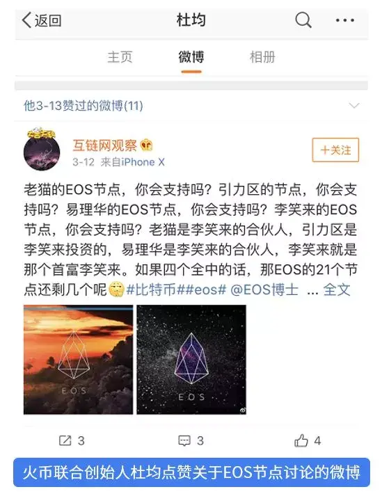 老猫在自己的公众号发文《风雨飘摇之际,我选择做个超级节点》,开始了拉票,将向支持老猫节点的大佬们返还节点收益,也就是分红。一个节点每年可以获得 238 万个 EOS 的收益,稳赚不赔的好机会,当然给投一波币。于是乎,大家纷纷看好老猫的节点。