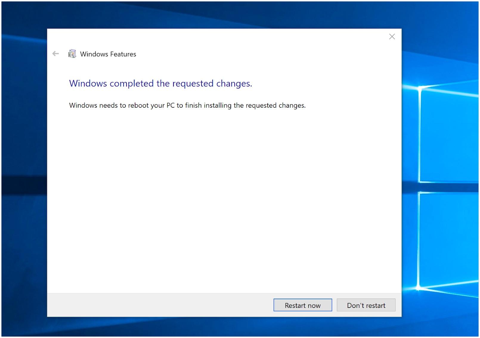 安装完成之后,系统将会询问是否重启。是的,重启设备吧。WSL 在系统重启之前不会启动,如下所示:
