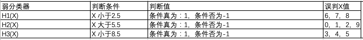 基于d2的样本权限,我们可以重新计算模型H1(x)、H2(x)、H3(x)的误差值大小,很明显H3(x)模型误差最小为:0.2143;