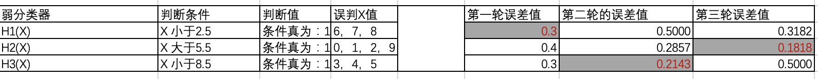 一目了然:用excel模拟Adaboost的计算