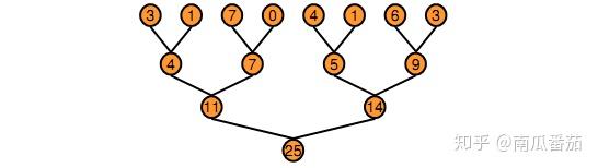 和并行啥关系:假设一组数据[1, 2, 3, 4],⊕就是“ + ”操作,那么顺序执行的reduce就是(((1+2)+3)+4) = 10; 再假设现在有两个线程,如何并行reduce:比如可以两个线程同时分别执行(1+2) 和 (3+4),再由第一个线程执行之前的结果 (3+7) ,即第一个线程(序号为0)会得到最后reduce的结果。