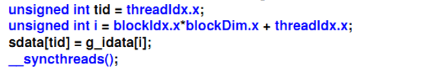if (tid < 256) { sdata[tid] += sdata[tid + 256]; } __syncthreads();