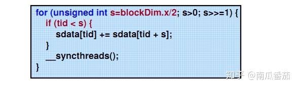 之前有提到warp中的32个线程是SIMT策略,意味着,当tid < 32 的时候,并不需要等待其他线程咯,也就是不需要__syncthreads() 指令,而warp的32个线程的又是顺序分配的,步进方式也知道,即右移1位,那么可以把最后的warp展开,而且也不需要每次都 if(tid < s) :