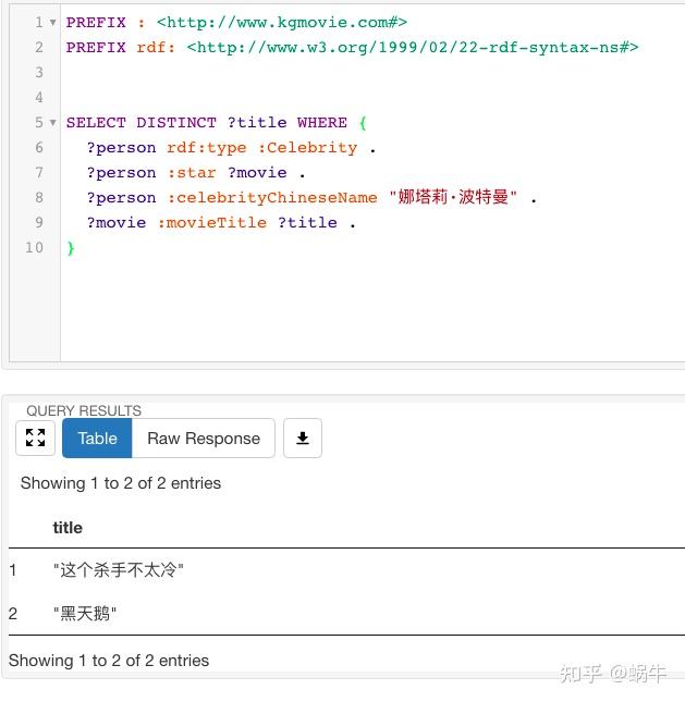 注意,原本的 ja:baseModel :tdbGraph; 需要修改为 ja:MemoryModel :tdbGraph; 不然会出现 "Exception in initialization: caught: Read-only object file" 错误。而且OWL本体文件需要修改为 .ttl 后缀,不然会出现“前言中不允许有内容” 这个错误 。启动成功后,尝试查询 “娜塔莉·波特曼出演的电影”,但是查询的结果是空,而且使用原来的 starring 谓词查询出来的结果也是空的。