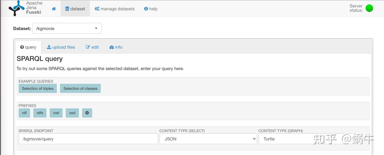最近正在跟着专栏《知识图谱-给AI装个大脑》实践KBQA,但是跟到《实践篇(四):Apache jena SPARQL endpoint及推理》的时候发现了一些问题。首先,按照作者提供的配置并没有顺利启动fuseki;其次,也完全看不懂配置文件中的配置项。所以心一横就干脆自己直接去看官网学习了,而这篇文章就是实践过程中的踩坑记录。在开始实践记录之前我要强烈吐槽一下!jena官网的资料真的是无比混乱,没有清晰的分布逻辑,你要看懂A需要先看懂B、C、D、E,等你看完E的时候你已经迷失在一堆打开的网页中了。。。。本文对应的代码和配置文件已经放在github:https://github.com/yangqinj/KBQA-for-movie