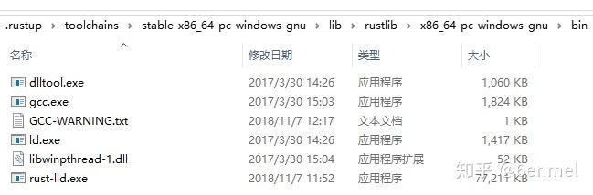 pc-windows-gnu 工具链是自带 gcc 和 ld 的: