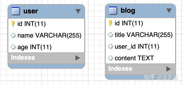 这里的关系并不依赖数据库外键,比如 blog 表里 user_id 可以不是外键。