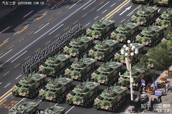 自1999年建国50周年大庆阅兵后,亮相的99式主战坦克,在经历了十年后2009年又一次从新披挂,装备了更强的复合装甲、爆炸式反应装甲、主动式防护系统(激光致盲武器),可发射炮射导弹的125MM口径双向稳定滑膛炮,自动装弹机,具备猎-歼式指挥火控系统,并具有在夜间动对动的攻击力,可瞬时爆发出1200马力(上1500马力的动力系统并不是什么困难)的动力系统。